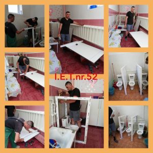 Instalarea pereților pentru separarea WC-urilor în grupele nr. 2,3,4